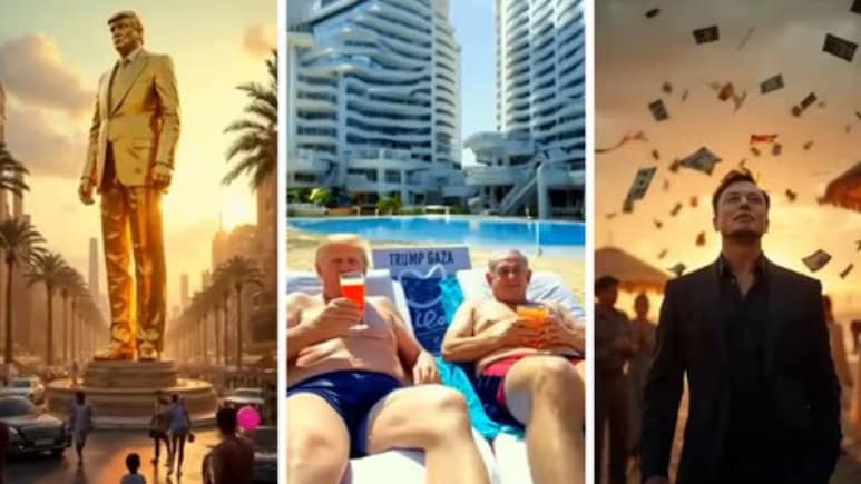 वीडियो में इसके बाद लाल,सफेद और नीले रंग में ‘व्हाट्स नेक्स्ट?' लिखा दिखता है..बैकग्राउंड में एक गाना है जिसमें कहा जा रहा है कि अब कोई सुरंगें नहीं,अब कोई डर नहीं,ट्रंप गाजा अब यहां है. आगे वीडियो में गगनचुंबी इमारतें...सड़कों पर दौड़ती कार..अरबपति एलन मस्क जो अपना खाना इन्जॉय कर रहे हैं..बेल्ली डांसर,खूबसूरत बीच और एक बच्चा जो ट्रंप के सिर के आकार का सुनहरा गुब्बारा पकड़े हुए है.